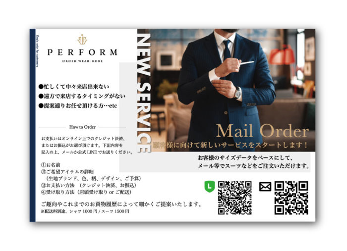 Graphic Designグラフィックデザインロゴデザイン・名刺・ショップカード・DM・ポスター・会社概要・商材資料などのデザイン、 企業・ショップのセールスプロモーションの企画、各種媒体のデザイン制作・印刷まで対応いたします。 Gallery NEW グラフィックデザインに関する記事Workプライベート空間で至福の時間!神戸・三宮でスポーツリンパケア2020-02-14Work忘年会シーズン到来!季節料理勝原さんで鍋を食おう!2019-12-03Work株式会社ジェイアンドダブルトレーディング様 | 製品パンフレット作成2019-01-28Work有限会社ワイズケア様 | 会社概要パンフレット作成2019-01-28WorkPet Shop PeterPan様 ショップーカードデザイン2018-08-12WorkPERFORM / ファイブワン神戸店 DMデザイン2018-08-12